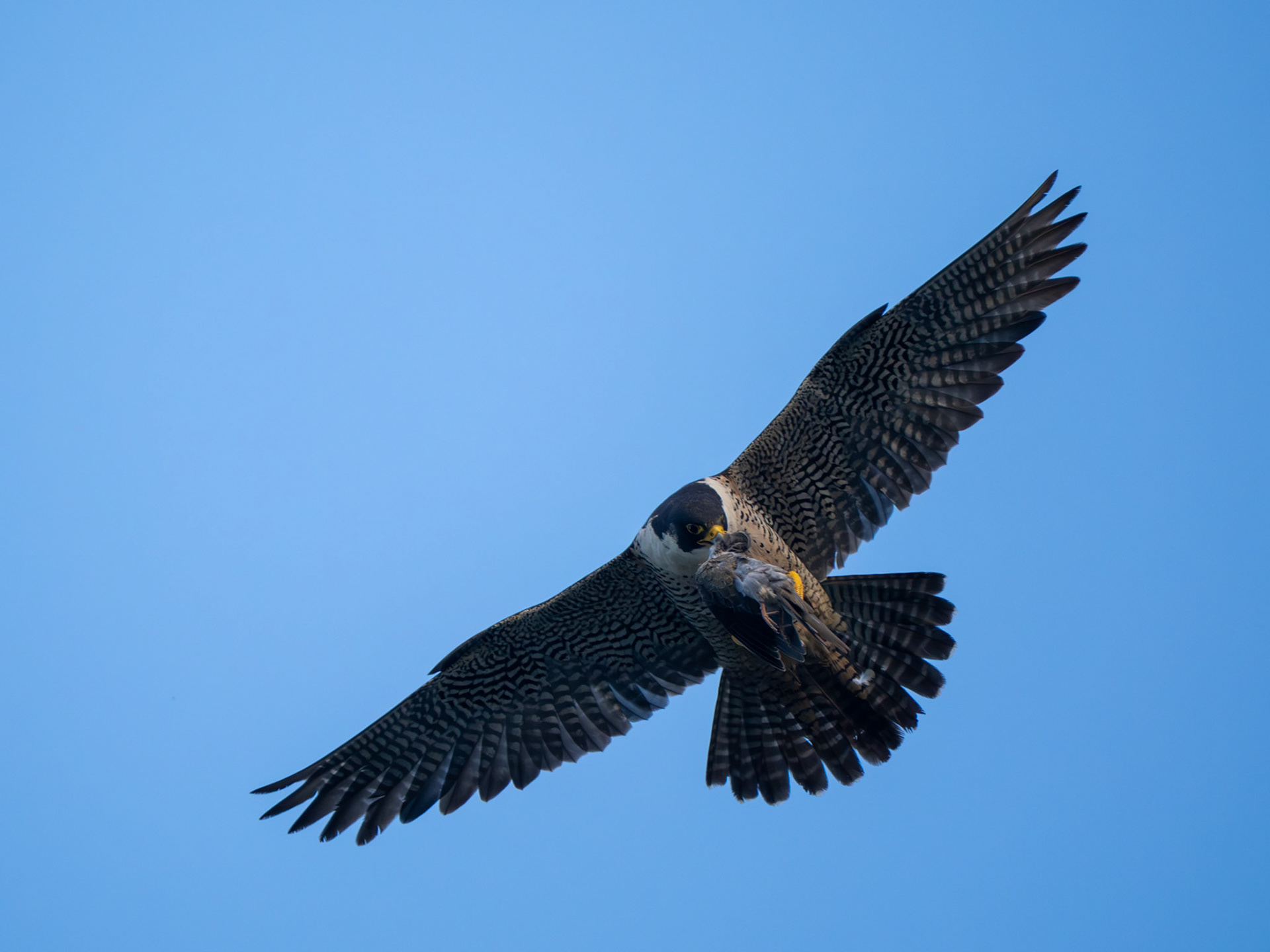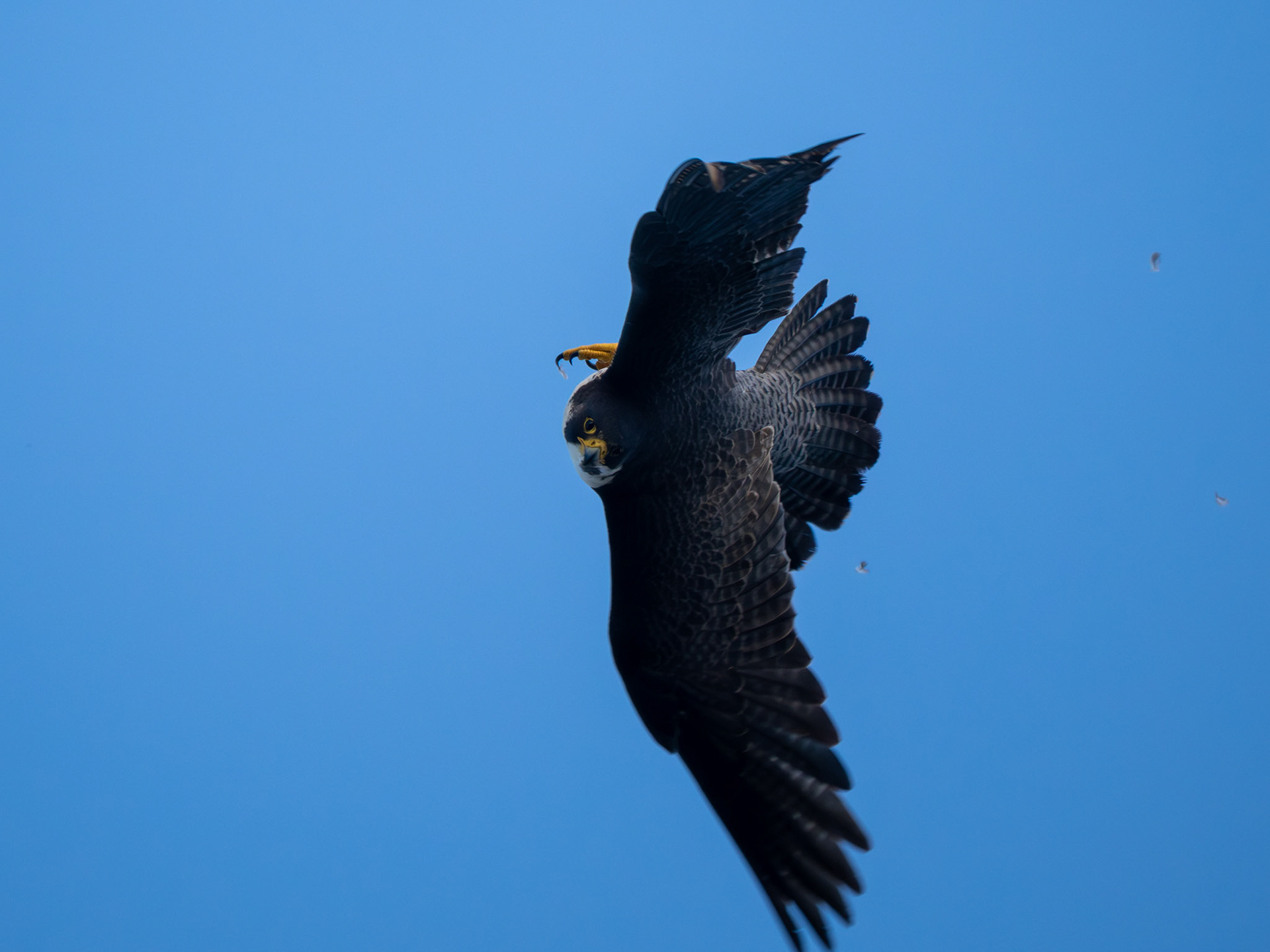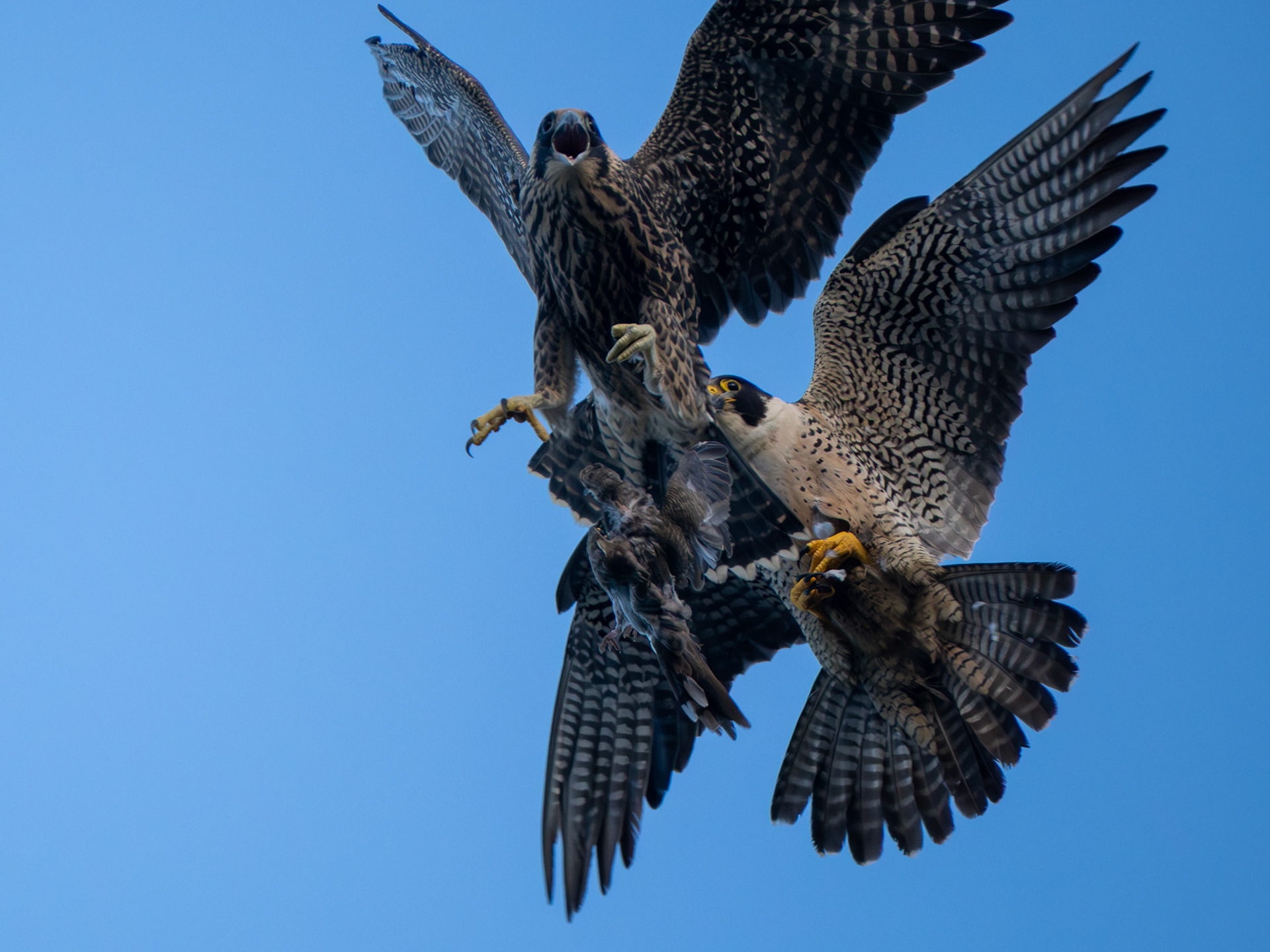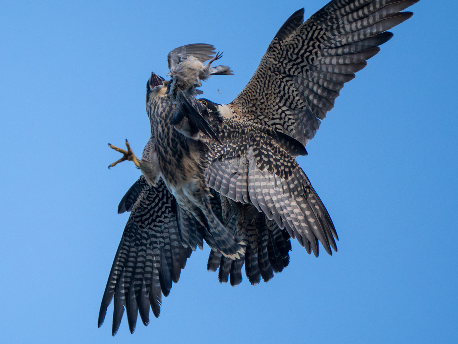 A fledgling Peregrine Falcon fumbles a hand-off (Pacifica, CA)