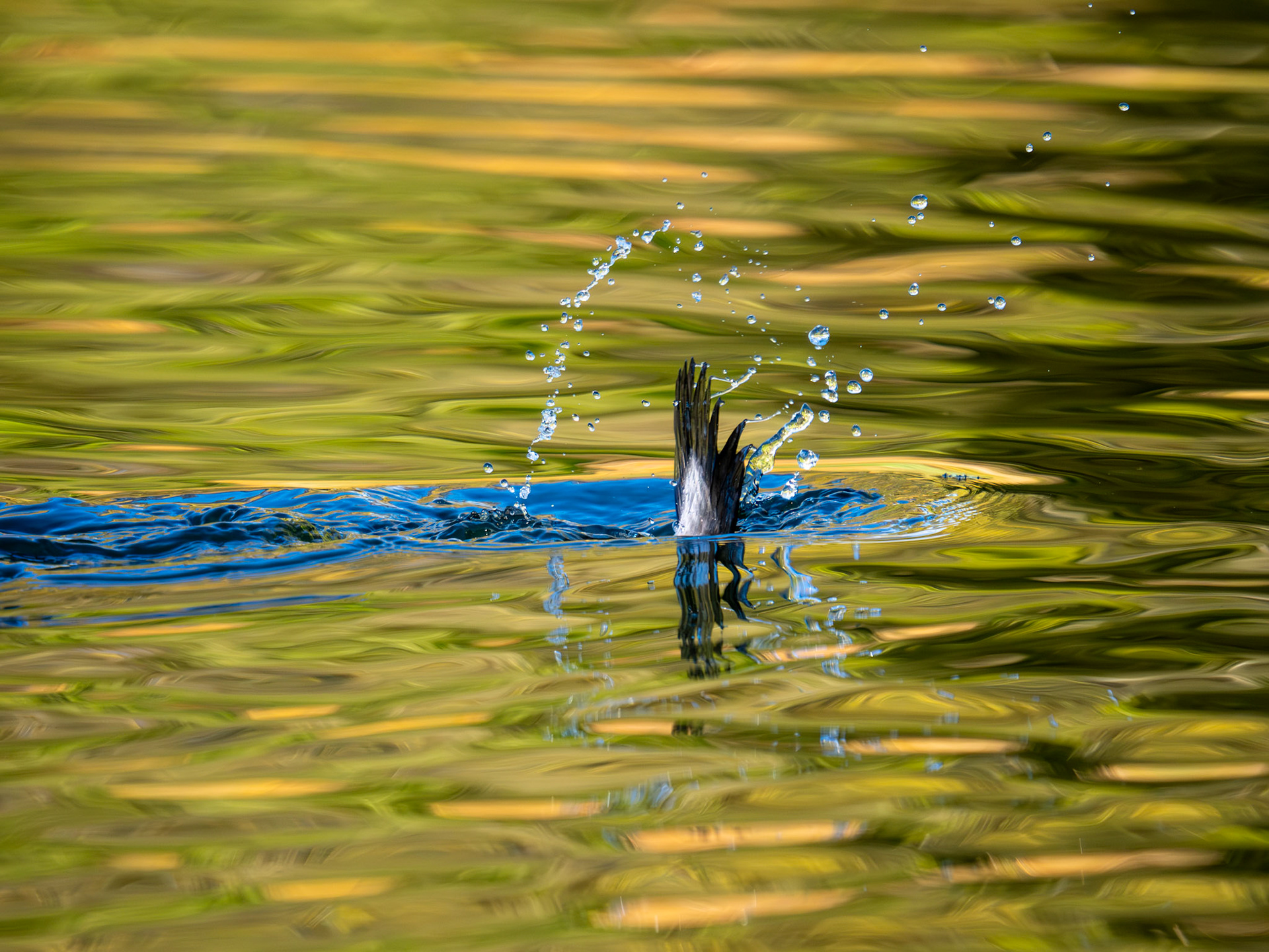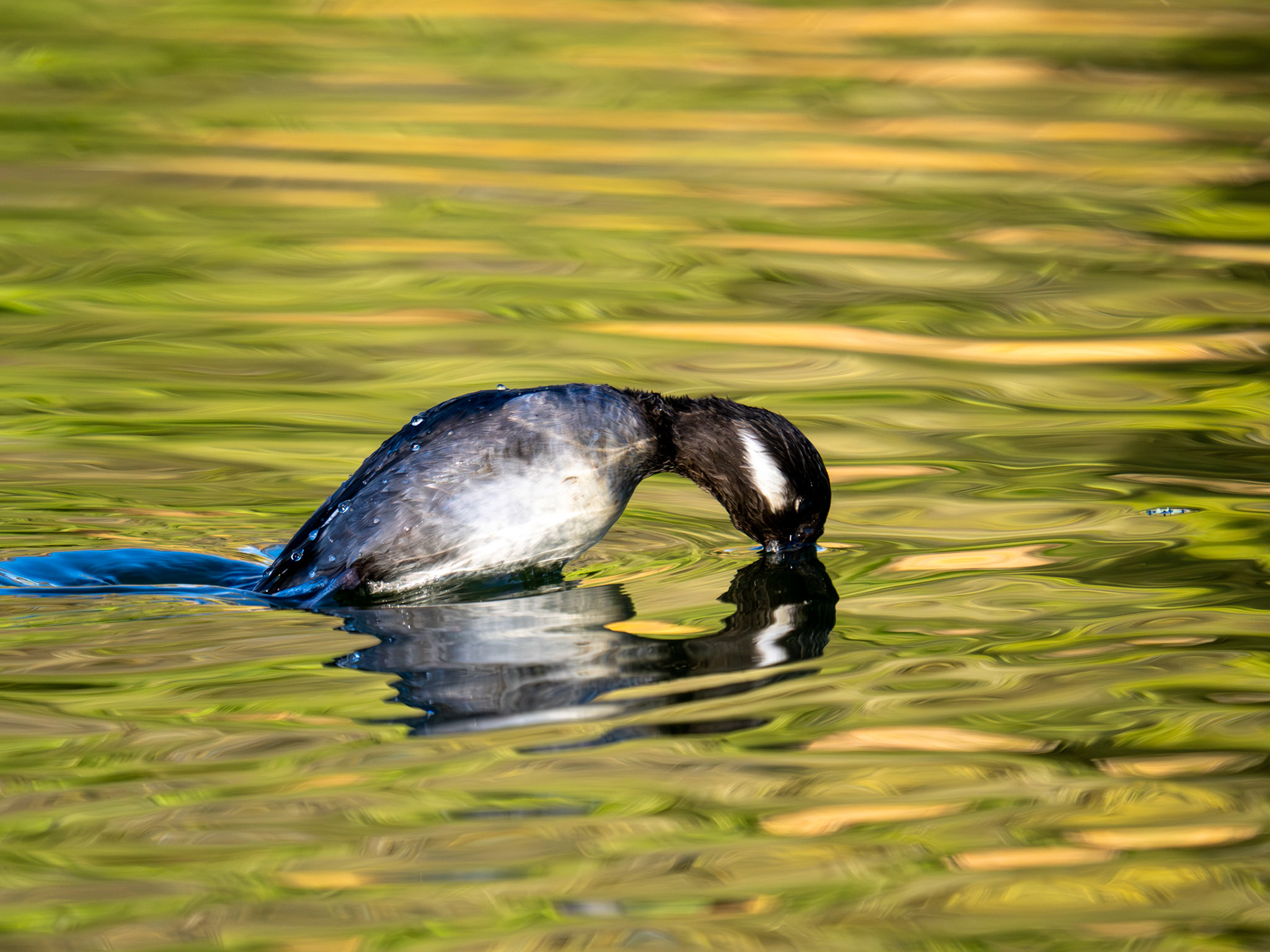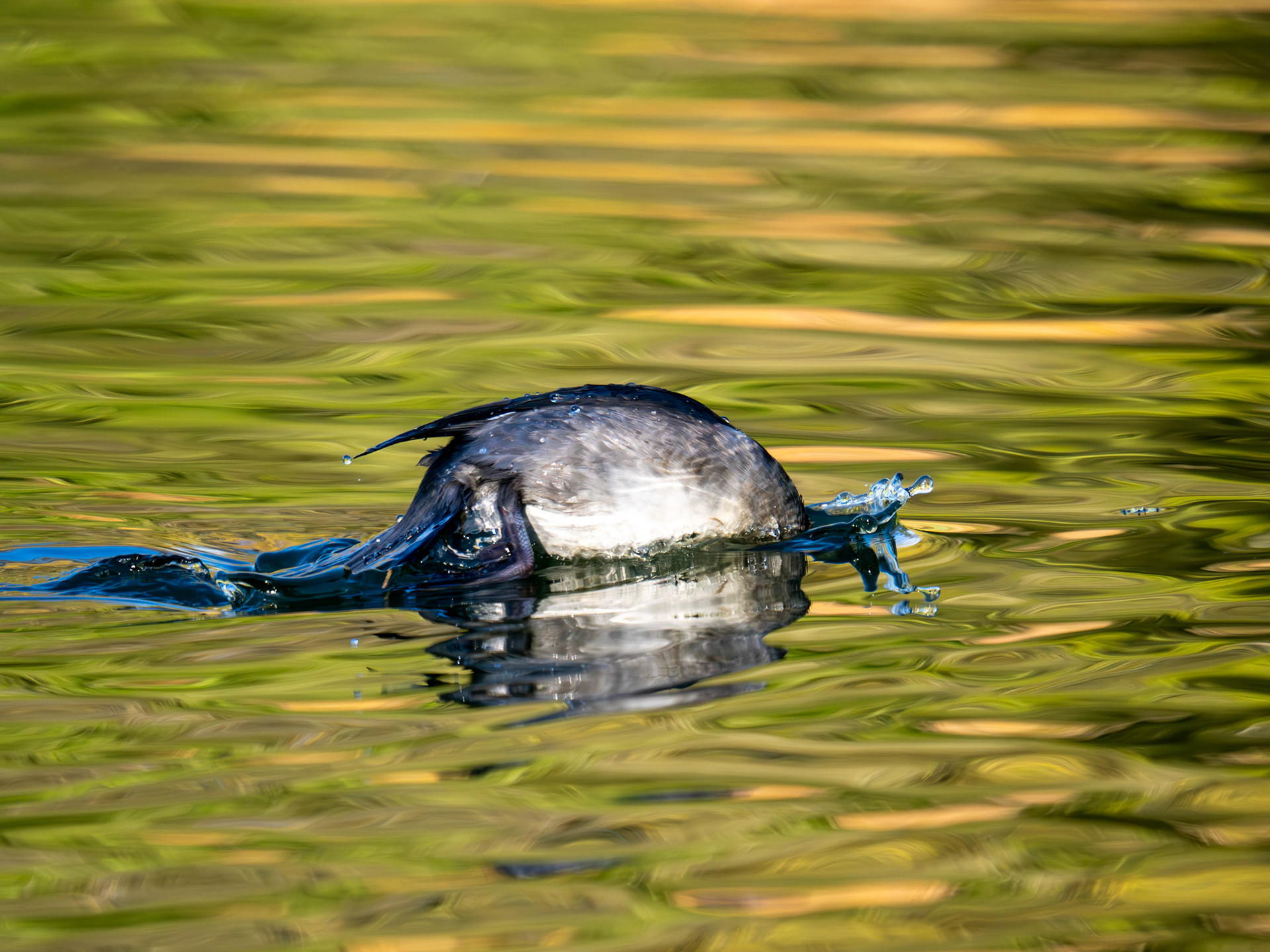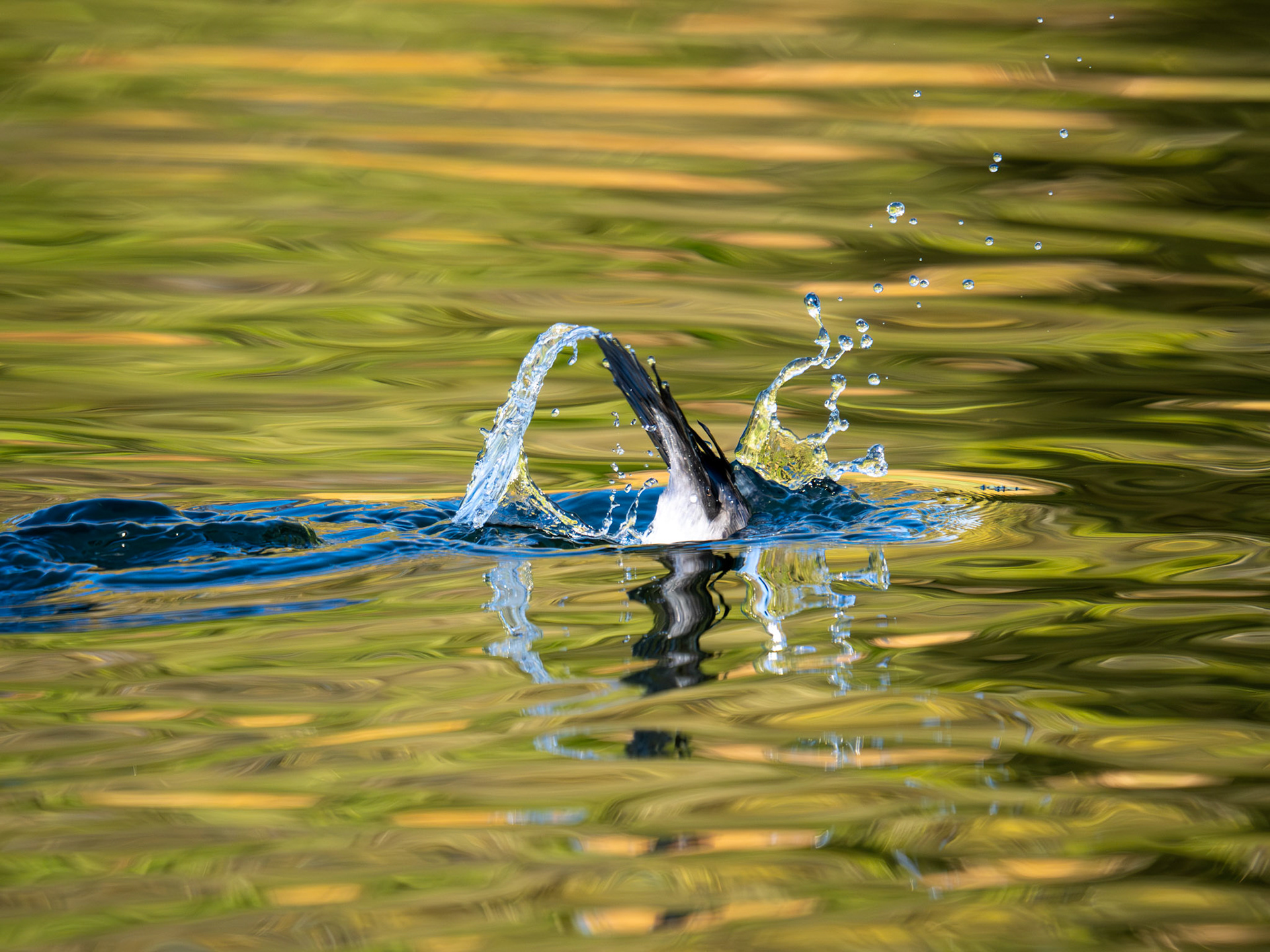 A female bufflehead dives underwater in search of her next meal (San Francisco, CA)