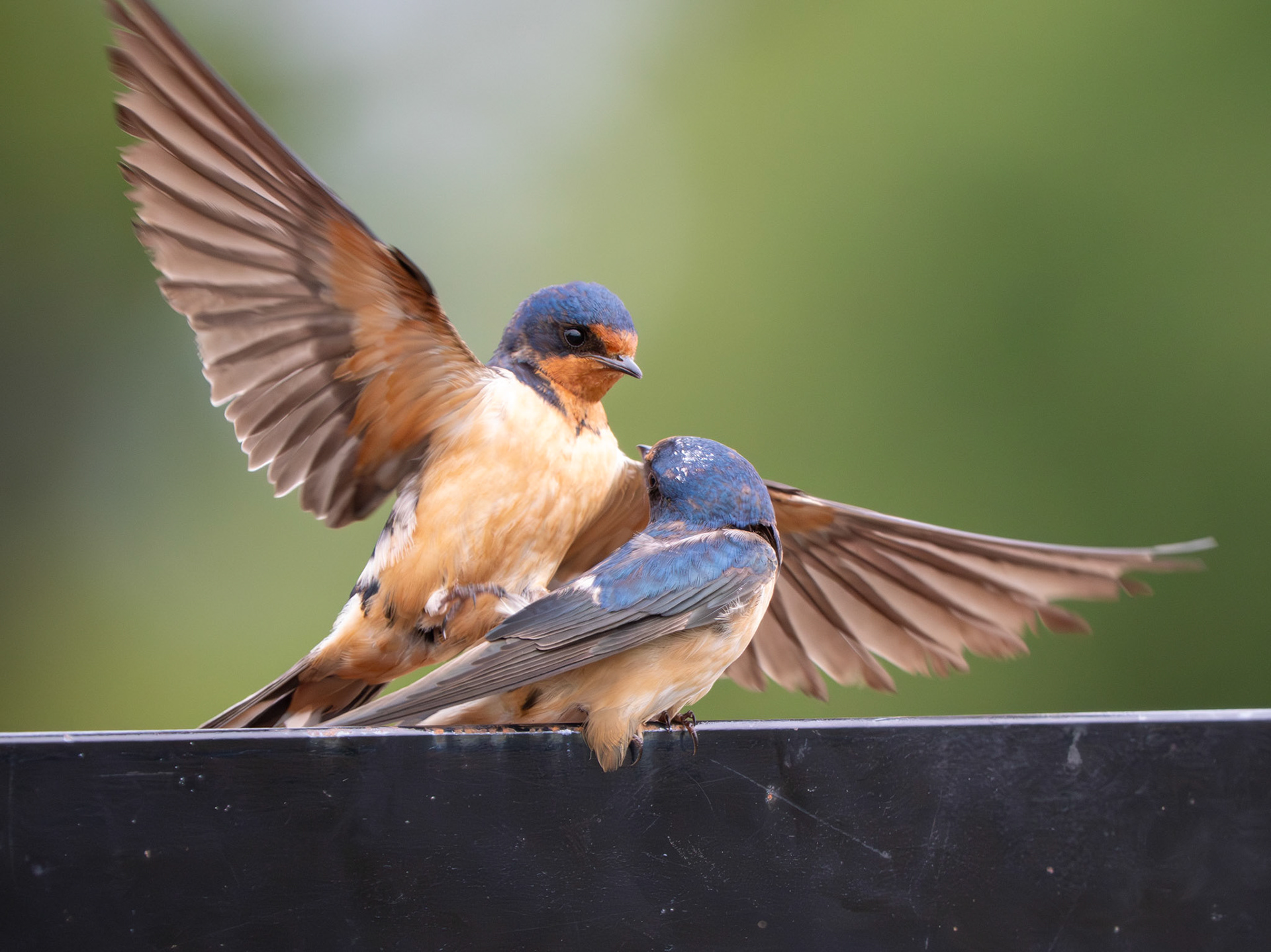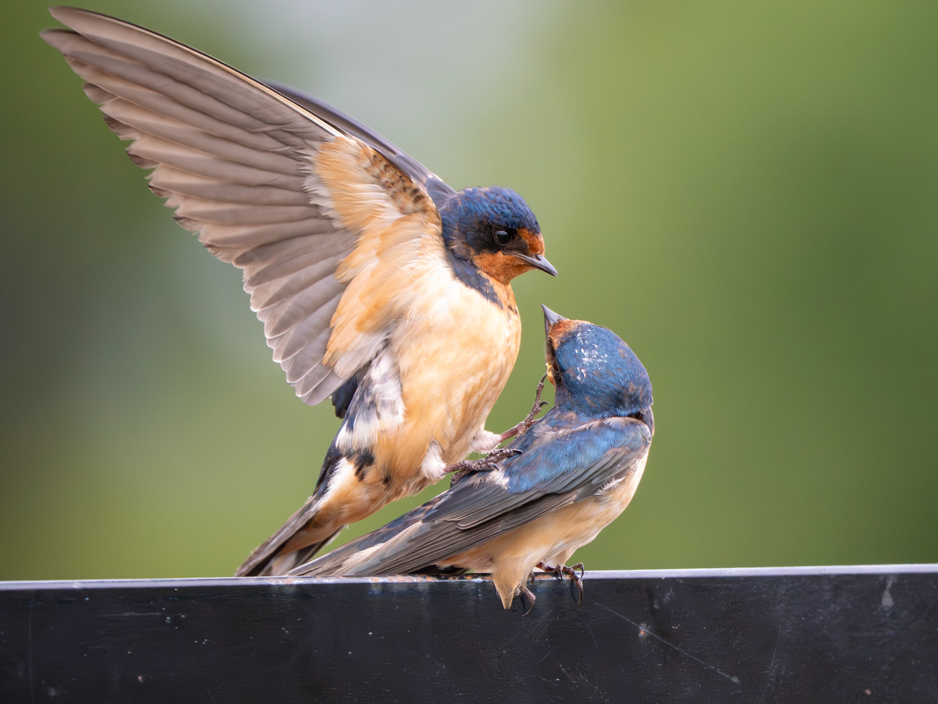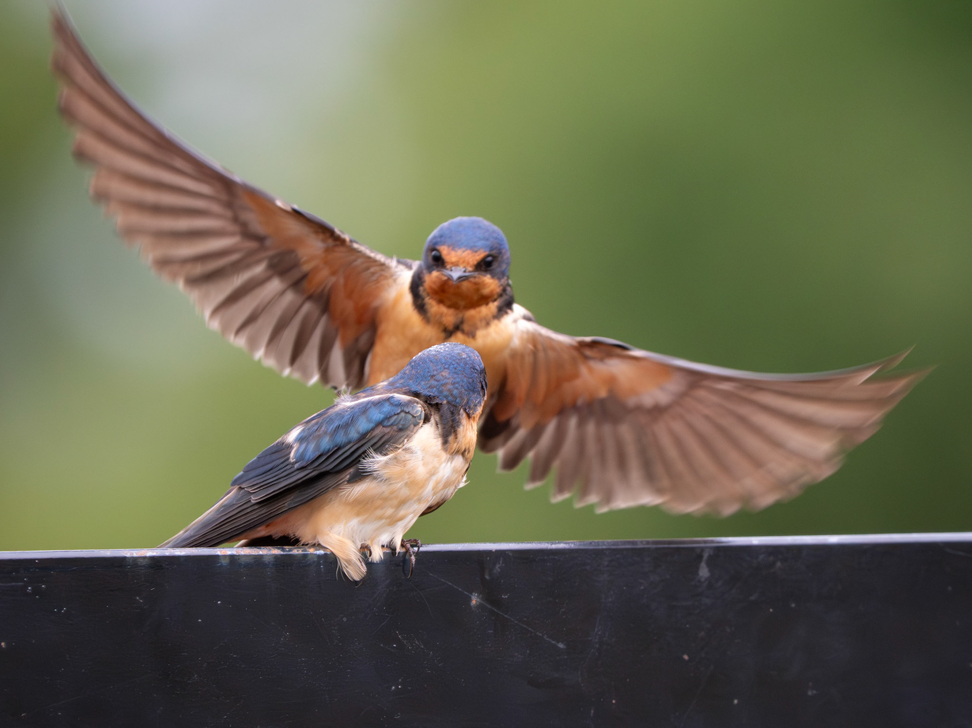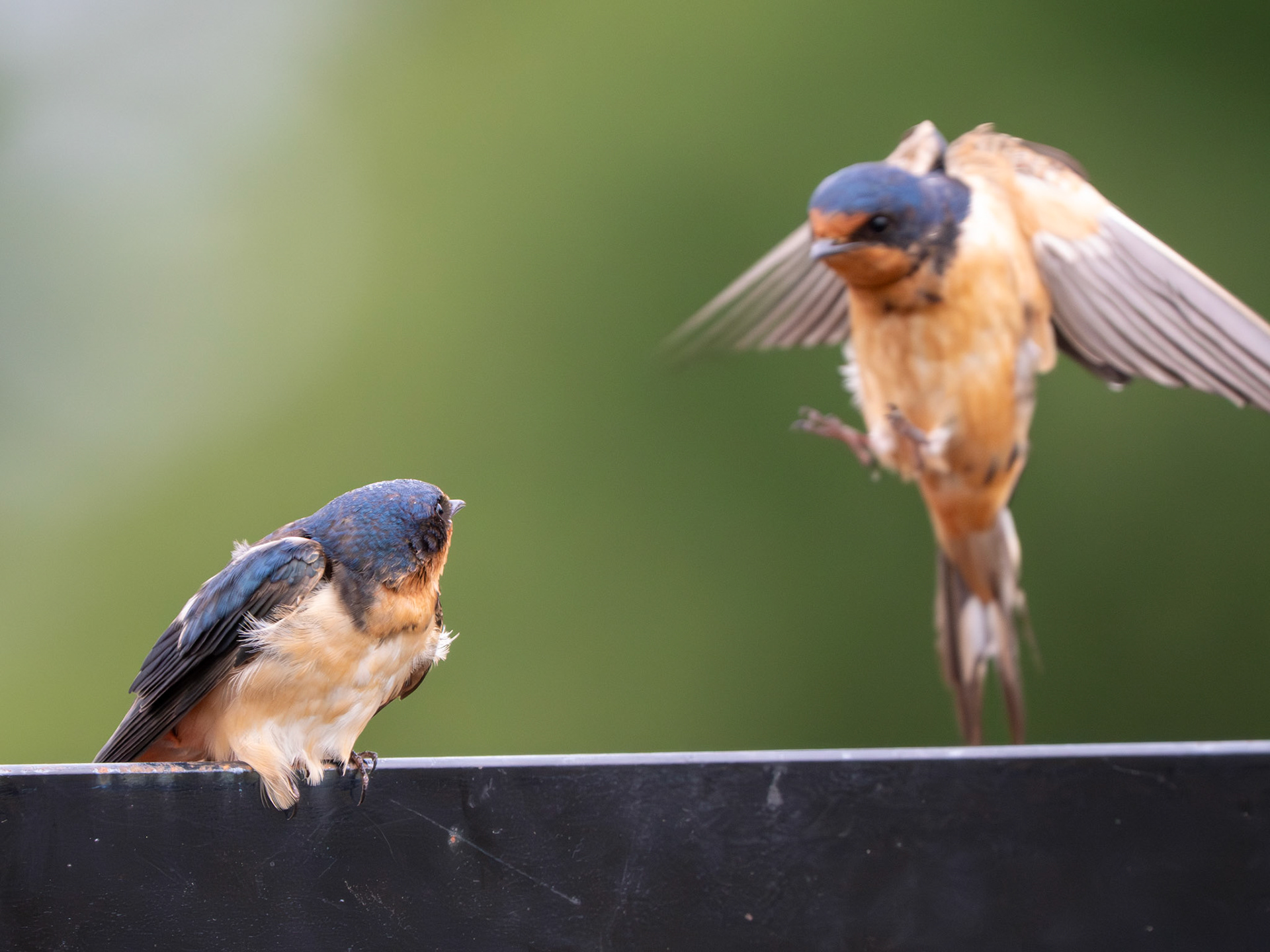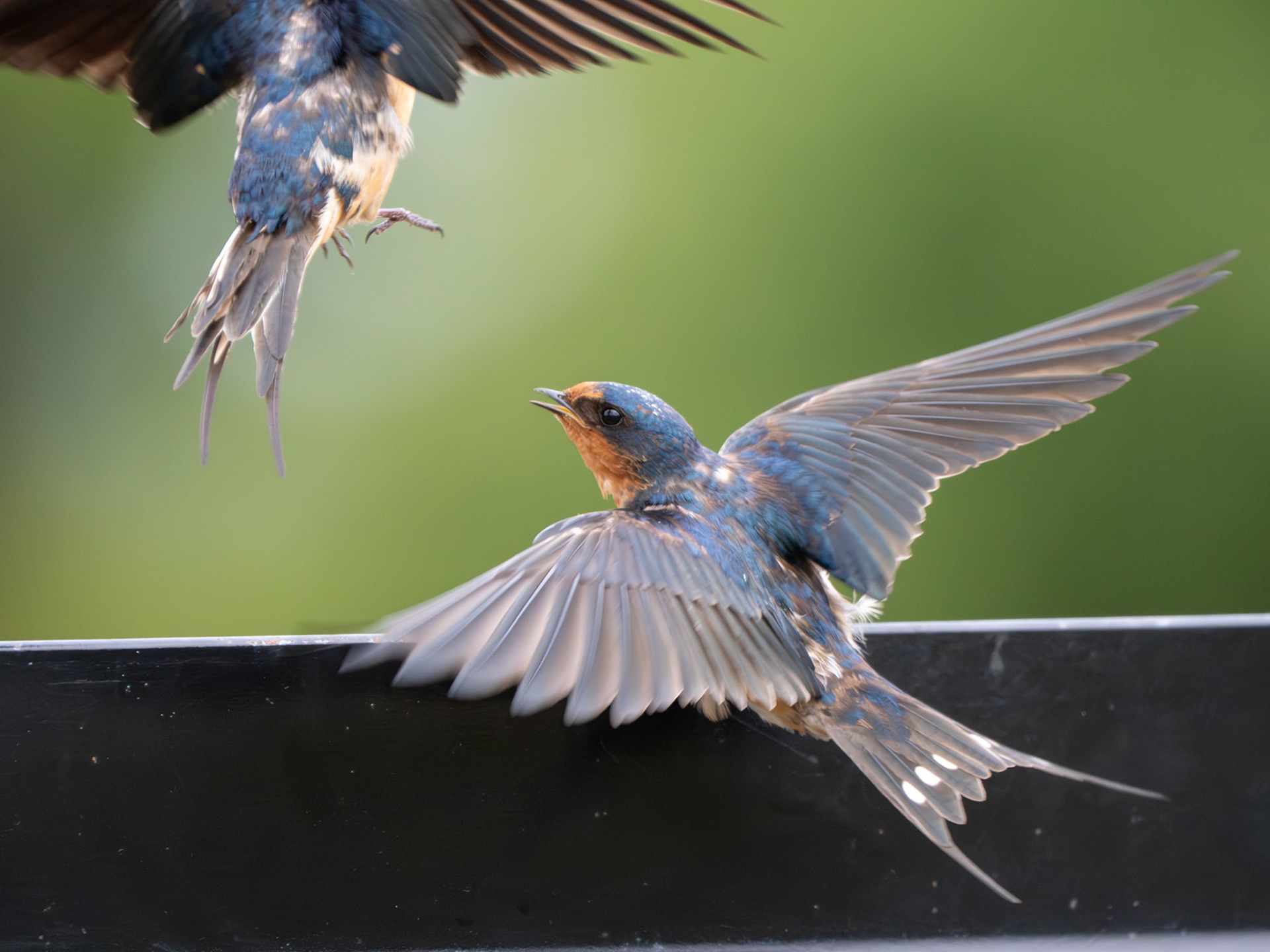 A female barn swallow rejects the advances of a suitor (Sebastopol, CA)
